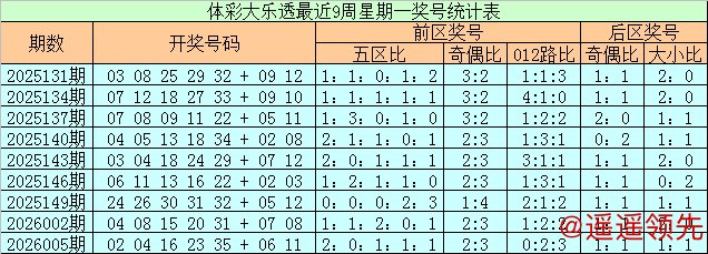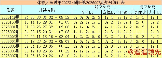 体彩大乐透第2026007期奖号为01 03 13 20 26 + 03 10,前区号码五区比为2:1:1:1:0,奇偶比为3:2,012路比为1:2:2,后区号码奇偶比为1:1,大小比为1:1。 石浩第2026008期大乐透前区五区对比分析: