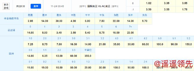 北京时间11月24日3:45分,意甲第12轮迎来本赛季第1场米兰德比,国际米兰"主场"迎战AC米兰。国米目前11场8胜3负积24分,与罗马并列联赛第1,米兰6胜4平1负积22分位居第3。在前一周的国际比赛日中,国米主力近乎全员出战国家队,米兰则多人留队养精蓄锐,以逸待劳迎接德比战。