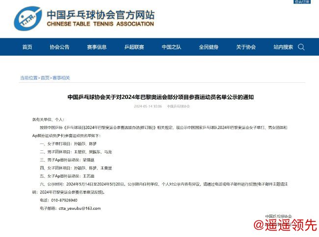 新华社北京5月14日电 中国乒乓球协会14日在官网对中国国家乒乓球队2024年巴黎奥运会女单、男女团体项目参赛运动员名单进行了公示必威体育下载。