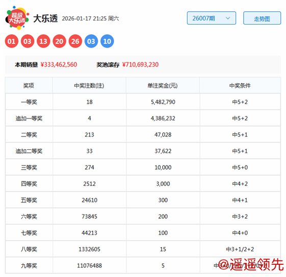 上期开奖:体彩大乐透第2026007期开奖号码为:01 03 13 20 26 + 03 10必威体育平台。