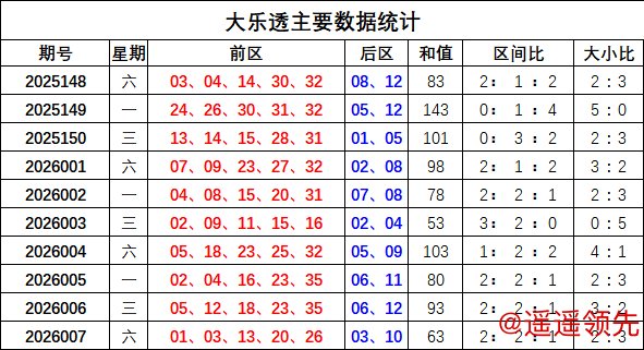 上期回顾:大乐透上期奖号为:前区01 03 13 20 26,后区03 10,前区奖号和值为63,区间比2:2:1,大小比为2:3,