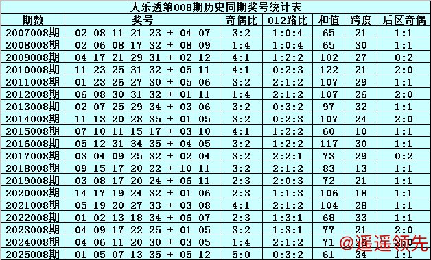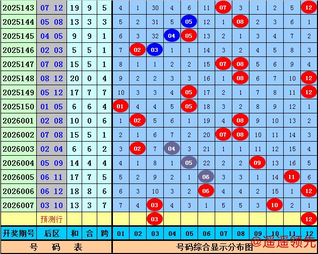 后区分析:在第008期历史同期开奖中,后区奖号全奇出现5次,全偶出现2次,一奇一偶出现12次,今年第008期后区预计出现一奇一偶组合,看好两码03和12。